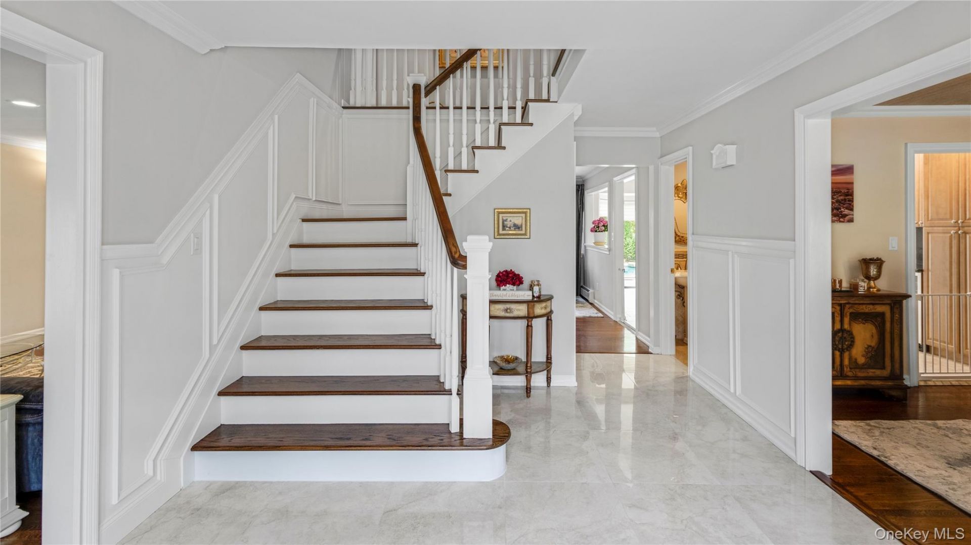 Welcome to this elegant Colonial, perfectly situated in the heart of Dix Hills within the highly sought after Commack School District. This beautifully maintained 4 bedroom, 2.5 bath residence offers a seamless blend of modern updates, effortless comfort, and true move in ready living. Upstairs offers four generously sized bedrooms and a tastefully updated full bathroom, along with a primary suite featuring its own large walk-in closet and a beautifully renovated, contemporary bath. Step inside to discover gleaming wood floors throughout, a spacious living room with a wood burning fireplace, and sliding glass doors that open to your own private outdoor retreat. The backyard is truly an entertainer's dream, featuring stunning paving stones, and a spectacular in ground saltwater pool with gas heat and an energy efficient heater, creating the perfect setting for unforgettable gatherings. The kitchen flows effortlessly into the dining area and is complemented by a butler's pantry and wine refrigerator ideal for both everyday living and entertaining. All bathrooms have been tastefully updated with a clean, modern aesthetic. The fully fenced property showcases exceptional curb appeal with beautifully designed landscaping throughout. Additional improvements include a new roof (2025) and new skylights (2024). The home is equipped with a full basement, 2 car garage, central vacuum, whole house water filtration system, and 9 zone in ground sprinklers. Enjoy year-round comfort with 2 zone central air and 3 zone gas heating, with a full conversion to gas completed in 2019, including tankless water heater. For those seeking refined luxury living in a prime location, this is an exceptional opportunity to call home.