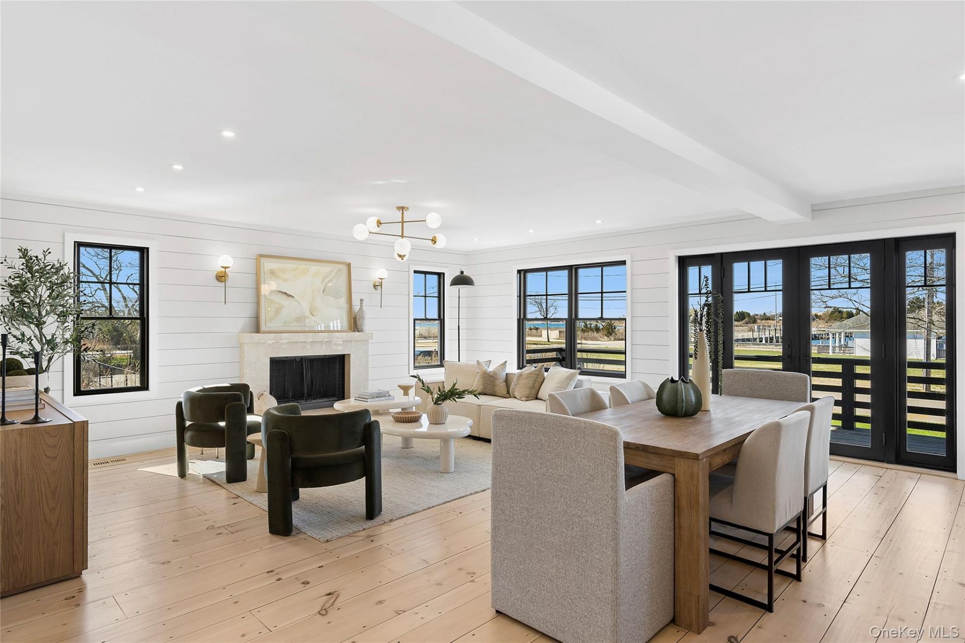 Perfectly positioned just moments from the heart of Westhampton Beach Village, this beautifully, turn-key residence captures the essence of classic Hamptons living with a refined, modern edge. Thoughtfully designed and impeccably maintained, the home offers a seamless blend of comfort, style, and effortless indoor-outdoor living.The first floor welcomes you with a sun-drenched, open-concept layout anchored by a stunning chef's kitchen featuring premium Viking appliances, sleek quartz countertops, and wide plank pine floors that carry warmth throughout the space. A gracious dining area flows seamlessly into the inviting living room, where a wood-burning fireplace creates the perfect setting for relaxed evenings. A junior primary suite with an en-suite bath provides flexibility for guests or first-floor living, complemented by a powder room and pantry for added convenience.Upstairs, the home continues to impress with two well-appointed guest bedrooms and a beautifully finished hall bath. The primary suite is a true retreat, offering vaulted ceilings, a gas fireplace, and a private balcony with tranquil water views. Complete with a spacious walk-in closet and a luxurious en-suite bath, this space is designed for both comfort and escape.Outdoors, a private backyard oasis awaits, featuring a heated in-ground pool, expansive mahogany decking-ideal for summer entertaining or quiet relaxation. All of this just moments from the vibrant shops, the village marina, dining, and ocean beaches of Westhampton Beach Village, making this exceptional property the perfect Hamptons getaway or year-round residence.