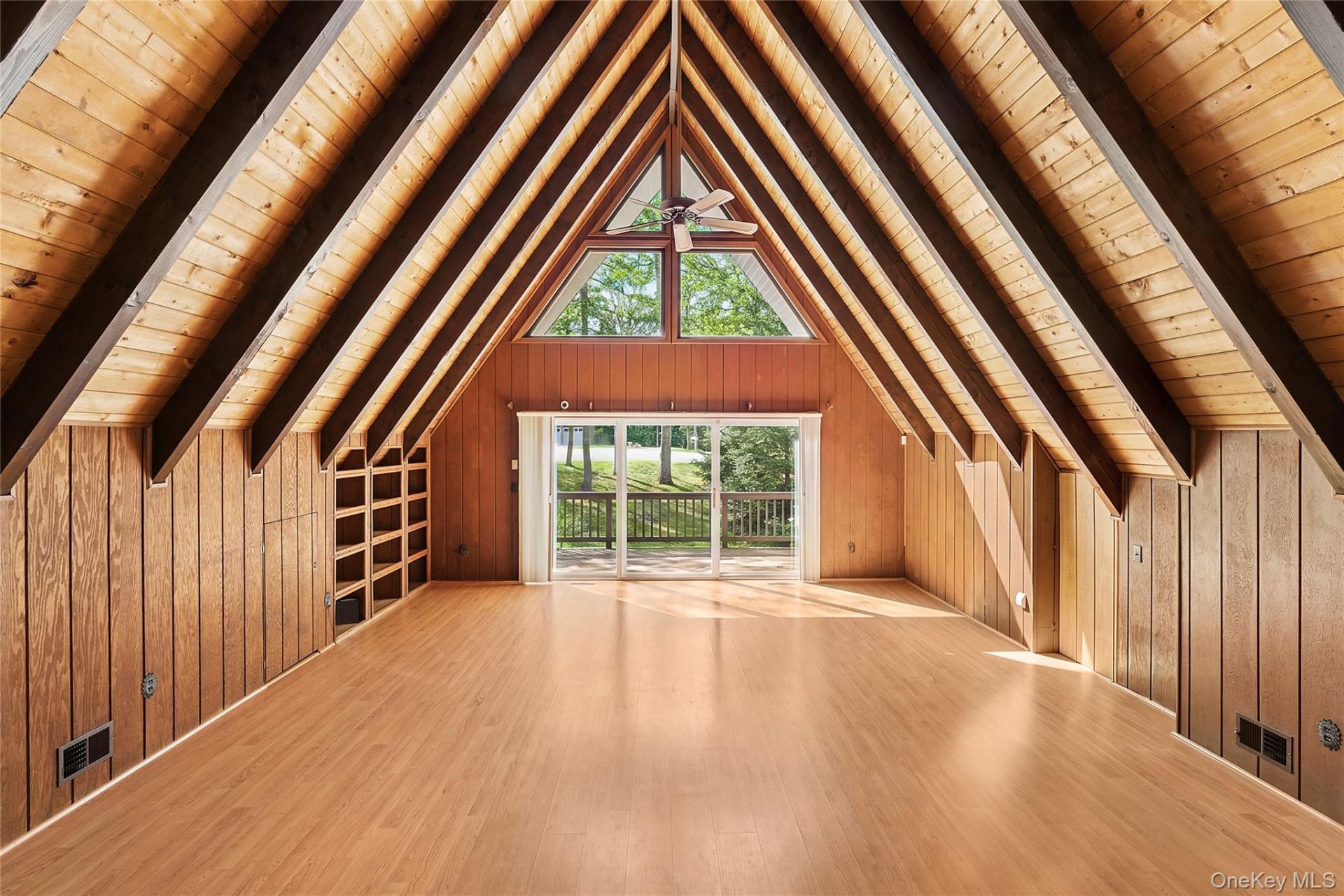 Unique opportunity in Southold to create your dream home on the North Fork. This A-frame-style house, reminiscent of a chalet, features a striking wall of windows that leads to open rafter ceilings. The main floor is perfect for entertaining, with a quaint kitchen, two bedrooms, a full bathroom, and the sunken A-frame living room that captures the essence of the home. Adjacent to the living room, sliding doors open to a wrap-around deck overlooking the side yard, which is ideal for al fresco dining or enjoying an evening gathered around the fire pit. Upstairs, you'll find a spacious loft that can serve as an office, recreational space, or lounge. The loft includes a balcony that overlooks the living room and provides access to a mini rooftop terrace with views of the backyard. The lower level, which has a private entrance, is ready for full renovation and is already framed for a bedroom, bathroom, laundry room, and additional storage. The two-car attached garage can be repurposed for additional living space or perhaps a gym. The property encompasses 1.37 acres, having been merged with the adjacent land, providing ample space for a potential pool, tennis court, or additional structures while ensuring plenty of privacy. Wonderful investment opportunity. You'll also enjoy convenient access to the beaches of Southold Bay, the village, and local vineyards.