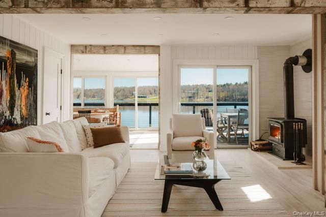 Drift into lake-life mode with this entirely rebuilt waterfront home set along the peacefulshoreline of Lake Huntington. This serene lake house offers a tranquil escape with breathtaking,unobstructed water views and a seamless connection to nature.Completely renovated in 2025 and thoughtfully design for both comfort and style, the homeshowcases a range of distinctive details, including a cozy wood-burning stove, butcher blockcountertops, whitewashed maple wood flooring and reclaimed barn wood beams thatbeautifully define the different rooms of the open-concept living area. The stunning kitchenincludes KraftMaid cabinetry, extensive countertop, solid brass hardware, floating shelves anda charming vintage built-in hutch. Blending modern comfort with relaxed lake-house charm,flooded with natural light, the home offers three bright bedrooms, two full bathrooms, twodining areas perfect for gathering and a versatile bonus loft. The light-filled living room centersaround the wood stove and is framed by walls of sliding doors that open to sweeping lakeviews, creating a warm and inviting space year-round. The cantilever wraparound deck offersexpansive outdoor space perfect for relaxing or hosting guests. The backyard leads directly toyour private stretch of Lake Huntington with a private dock for easy water access, ideal forboating enthusiasts to enjoy this peaceful motorboat lake.Just a short drive from New York City this property combines sophisticated design, serenity anduninterrupted lake views. Centrally situated near Bethel Woods Center for the Arts, home ofthe original 1969 Woodstock Festival, as well as the charming nearby towns of Narrowsburg,Callicoon, and Jeffersonville, known for their restaurants, shops and outdoor recreation. Thehome also offers easy access to scenic hiking trails and forest preserves. It is an ideal retreat forthose seeking a refined balance of nature, culture and lakeside living.This property is well suited to use as a permanent residence year-round, a vacation home or asan investment property with the potential for short term rental. This home already has been a very successful STR.